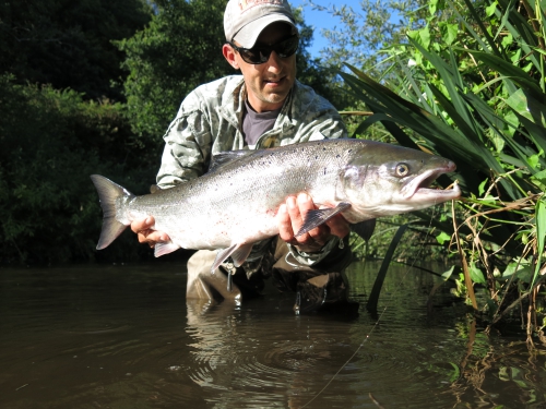 Rappelons que la saison au saumon de printemps (plusieurs hivers en mer, souvent 2) a été très bonne sur l'ensemble des cours d'eau bretons et de l'hexagone. Les TAC ayant été atteint sur toutes les belles rivières à saumons du Finistère, des Côtes d'Armor et de Normandie de manière prématurée. Certains "anciens" disent ne pas avoir vu ça depuis plus de 25 ans sur l'Ellé! Malheureusement une bonne année en saumon de printemps induit des captures plus rapides et une fermeture anticipée! Parfois comme sur le Léguer, la pêche ferme 15 jours ou 3 semaines après l'ouverture et de nombreux pêcheurs se retrouvent privés de leur loisir du fait d'une gestion basée sur la déclaration des captures et non sur la pratique de la pêche en elle même. Donc grosso-modo les bonnes années, les pêcheurs se retrouvent en reste du fait d'une fermeture trop rapide, souvent avant la bonne période pour la mouche (mi-avril) et les mauvaises années, la pêche est ouverte mais les rivières peu peuplées en saumons, donc moins intéressantes! Espérons que dans avenir proche nos rivières à saumons soient gérées différemment en autorisant la pêche du saumon en No-Kill toute la saison pour le saumon de printemps comme cela existe ailleurs hors de nos frontières, ou tout du moins une fois les quotas ou TAC atteints pour avoir la chance tout simplement de pêcher le saumon pendant la meilleure période. Certaines AAPPMA y pense, mais c'est aux instances de la pêche de trancher. Cela n'est pas simple à mettre en oeuvre surtout lorsque l'on comprend les problématiques et mentalités! Je pense à mon humble avis que la gestion de la pêche du saumon de printemps devra encore évoluer si nous voulons quelle perdure, notamment en adoptant une gestion qui favorise des prélèvements raisonnés voir aucun prélèvement sur nos saumons de printemps. Cela fonctionne si bien sur de nombreuses rivières du monde, notamment certaines où j'ai guidé en Argentine ou en Russie. Vous me direz que je rêve, que c'est impossible en France, mais les rêves permettent de faire avancer les choses et de se battre pour l'avenir. L'avenir de nos cours d'eau et de nos poissons afin de transmettre nous aussi ce patrimoine à nos enfants, malheureusement encore en danger. Je tiens à préciser que pendant mes guidages saumons ou aloses, aucun poisson n'a été conservé ou a péri suite à leur capture et remise à l'eau et je souhaite que cela continue ainsi. D'ailleurs désormais, même si cela avait déjà été compris et se déroulait ainsi, tous mes guidages saumon et aloses seront en No-Kill intégral et je remercie mes clients de cette année pour avoir remis à l'eau leurs prises.