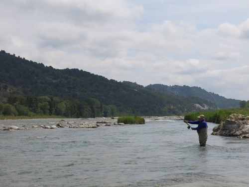 Première alose à la mouche pour Yves! et de surcroit à vue!