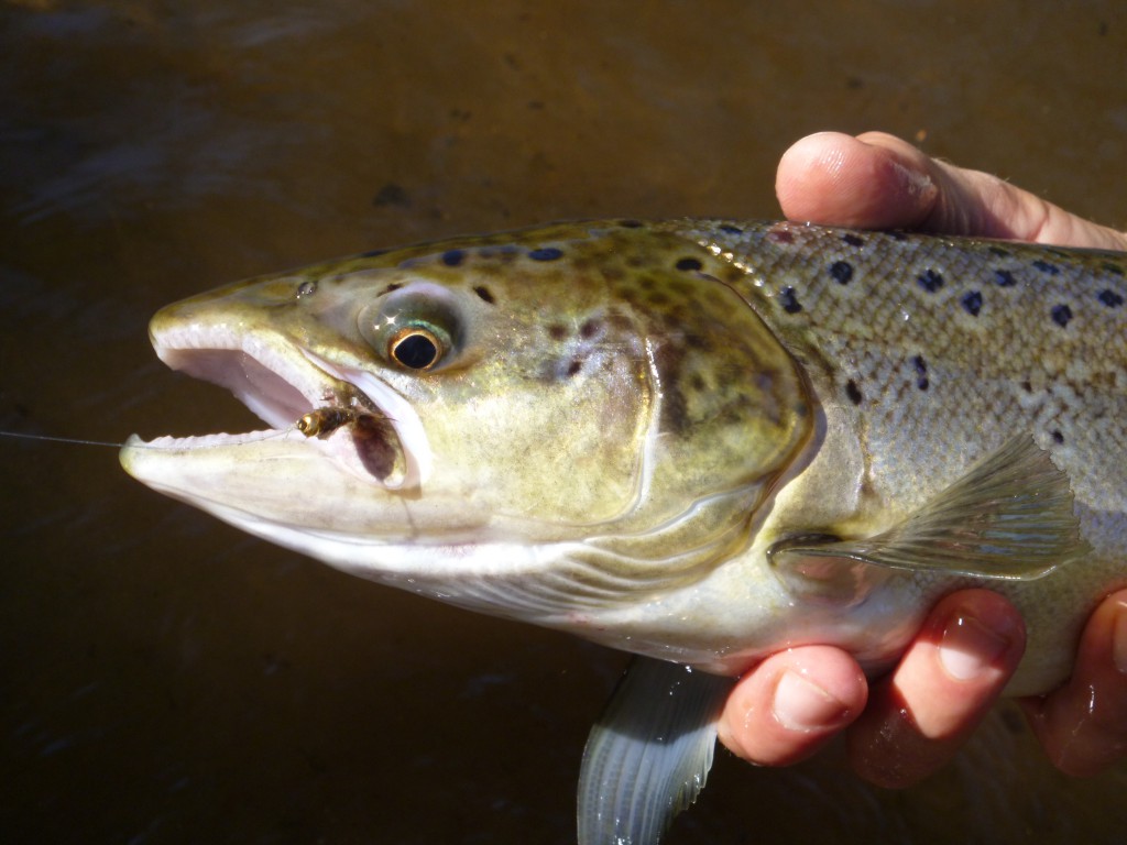 Les poissons sont assez facile à repérer avec un peu de soleil. Il faut alors leur présenter habillement une petite nymphe orangée à animer devant un petit groupe de poissons. Les touches sont très rapides et furtives, et il faut réagir très vite pour ferrer votre poisson. Il s'en suit des rushs puissants et quelques jolis sauts. En petite rivière et avec du matériel léger c'est un vrai bonheur!